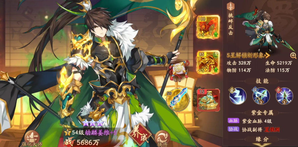 合击符的养成是提升其效果与团队整体战力的核心,主要分为升星与强化两个独立维度。升星操作需要消耗足够数量的同名兵符碎片,每提升一星都能显著增强该兵符的基础属性、特殊效果概率(如眩晕概率)以及对全体武将的攻击、生命与防御属性加成。强化则是一个更通用的提升路径,它需要消耗兵符精华与兵符铸造石这类通用材料,主要来源于名将传、巨兽入侵等玩法,强化后同样能为队伍全体成员带来可观的属性增益,是高效提升综合战斗力的重要手段。